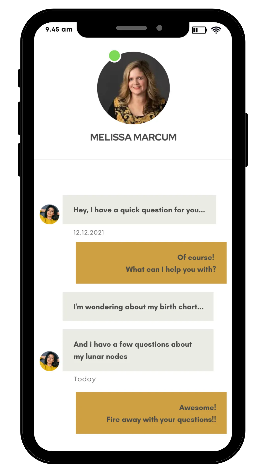 In the first few minutes of interacting with Melissa, I was amazed with her in-depth knowledge of astrology, and the role it plays with personal situations and scenarios. However, what was most impressive was how easily she was able to break down and explain my astrological chart impacts the who, what, and why of my day-to-day life experiences- which is priceless. She is easy to talk to and is a great listener! Her positive attitude is infectious, and I literally count the days down to my next session with her.